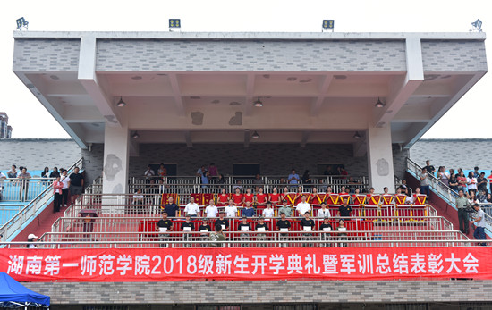 2018年新生开学典礼暨军训总结表彰大会圆满落下帷幕。祝福同学们在湖南第一师范学院这所“千年学府、百年师范”奋发图强,共创辉煌。