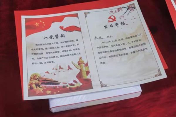 “在建党100周年之际收到党组织送来的‘政治生日贺卡’,意义非凡、刻骨铭心。通过集体过政治生日,真切地感受到了组织的温暖,感受到有一种无形的力量在激励、鞭策自己,今后将继续把初心和使命化作干好工作的信心和决心!”青年教师党员朱轶激动地说道。