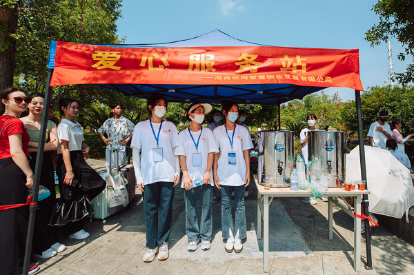 美术与设计学院院青年志愿者团队在校门口、国基广场迎新点、接车点为新同学带路到报到点,在步行过程中为新同学介绍学校、学院、办学新理念,以及生活学习方面的各种问题,为新同学们答疑解惑。新生到达美术与设计学院迎新点后,各个班级班导生为新同学们系上美设院专属丝带,贴上专属贴纸,为每一位新同学送上炎炎夏日里一瓶清爽的水,并且在国基广场设置固定采访点,采访新生开学第一天的所想所感,在采访中和新同学拉进了距离,让新生快速融入美设院大家庭。