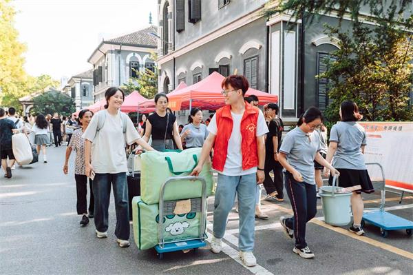 今年是疫情放开之后的第一个新生报到季,这次大家终于取下口罩,以最美的微笑迎接彼此,笑容中是藏不住的激动与憧憬。与往年不同,今年新生家长可以陪伴孩子入校办理报到手续,也可以用私家车直接把新生和行李送到学生宿舍楼下。校内安排了6辆摆渡车免费为新生和家长服务,摆渡车往返于校门口与学生宿舍,为新生和提供从入校到入住的“无缝对接”暖心服务,让新生和家长们倍感温暖。